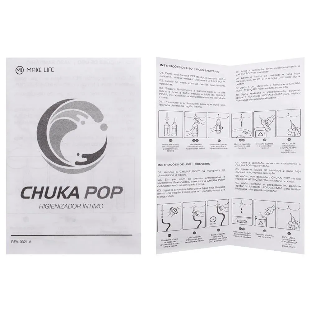 Desenvolvido diante da necessidade de realização da limpeza do canal do reto, seja por indicação médica, preparo pré - exame ou higiene pré - relação sexual, o CHUKA POP é um dispositivo pronto para uso, descartável.