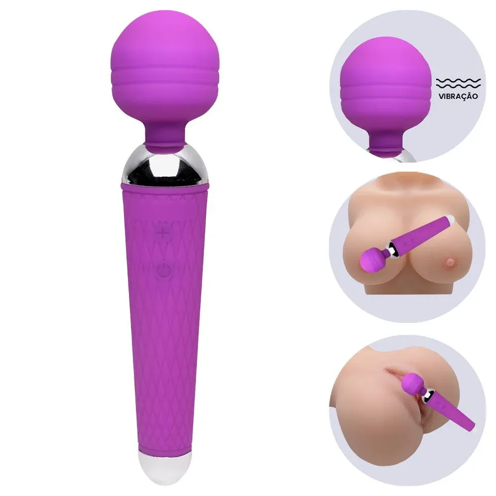 Massageador tipo varinha mágica, possui 10 Modos de vibração, ideal para massagear e estimular, clitóris, seios e aliviar a tensão. Resistente a água.