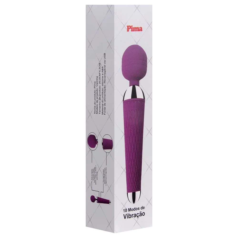 Massageador Pima tipo varinha mágica, possui 10 Modos de vibração, ideal para massagear e estimular, clitóris, seios e aliviar a tensão. Resistente a água.